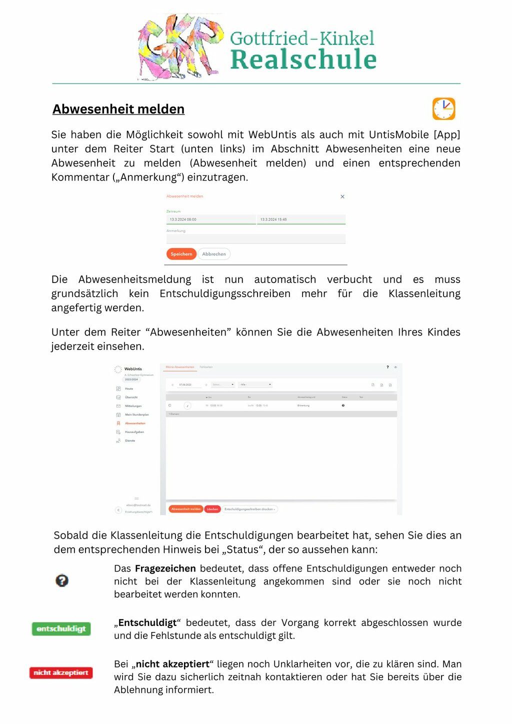 Hierzu müssen Sie sich zunächst als erziehungsberechtigte Person für WebUntis (die Browser-Version) registrieren. Wie das genau geht, erfahren Sie in den anhängenden Anleitungen: