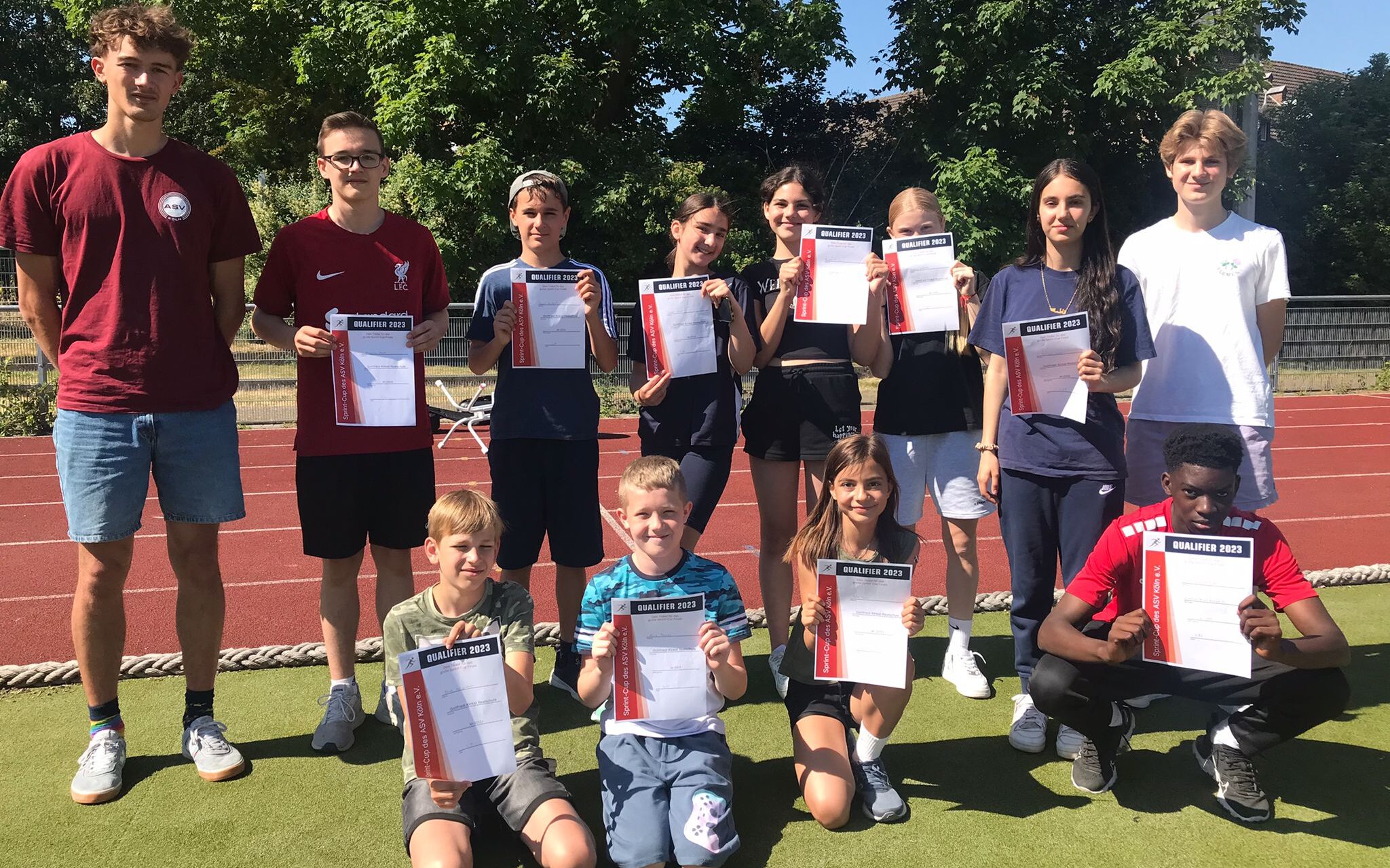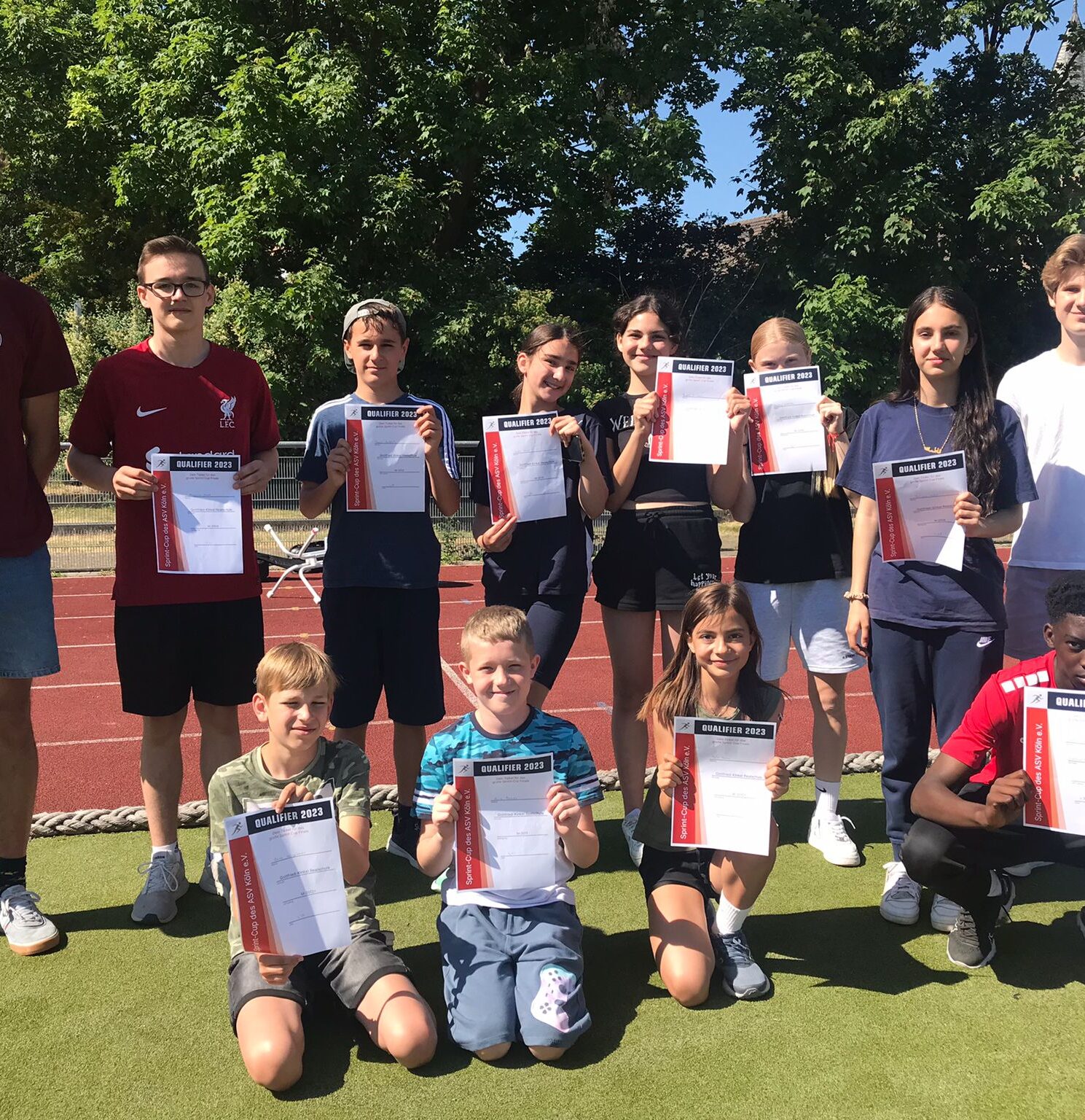 Am Mittwoch stand wieder der alljährliche Sprint-Cup im Liblarer Stadion an. Auf dem Foto sehen wir die Gewinner der einzelnen Jahrgangsstufen. Im September geht es für diese Schülerinnen und Schüler zum großen Finale nach Köln, um gegen andere Schulen anzutreten!
