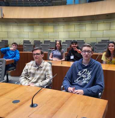 Die 9c durfte im Landtag in Düsseldorf an einer Sitzung zum Gesetzesvorschlag "Kostümzwang an Karneval in der Schule" teilnehmen und abstimmen, es wurde mehrheitlich abgelehnt. So also funktioniert Demokratie!