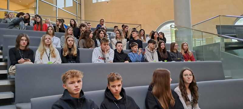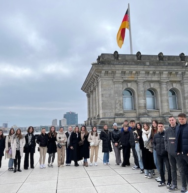 Einladung in den Bundestag am 28.02.2024 Berlin durch den Bundestagsabgeordneten Matthias BirkwaldIm Rahmen des Projekts “Auf den Spuren deutscher Geschichte und Kultur und Einladung vom Bundestag” waren am 28.02.2024 32 DSD - Schüler*innen aus 5 kroatischen Schulen mit ihrer deutschen Austauschschule auf Einladung des Abgeordneten Matthias Birkwald im Deutschen Bundestag zu Gast. Bei den Schulen handelt es sich um das Gymnasium Vladimir Nazor, Zadar, das Gymnasium Jurja Baraković, Zadar, die Hotel- und Tourismusfachschule Zadar, die Mittelschule Rab, die Grundschule Krapina und die Gottfried-Kinkel-Realschule Erftstadt Liblar. Alle 32 kroatischen Schüler*innen besuchen den DSD Unterricht der ZfA. Begleitet wurde die Fachschaftsberaterin Sonja Biermann aus Zadar von ihren kroatischen Kolleginnen Jelena Bujas-Grubar von der Hotel- und Touristikfachschule Zadar, Josipa Ribarić Perić von der Mittelschule Rab und Mirjana Klobucar von der Grundschule Krapina. Ebenso von den deutschen Kolleginnen Dietgard Schwarz und Ulrike Dick-Edalat, die mit 11 deutschen Schüler*innen aus Erftstadt angereist waren. Nach einem interaktiven Vortrag auf der Tribüne des Bundestags, wurden beim intensiven Gespräch mit den Einladenden Fragen der Schüler*innen geklärt und besprochen. Zum Abschluss wurde gemeinsam im Paul-Löbe-Haus, der Kantine des Bundestags, mit Blick auf die Spree gespeist.